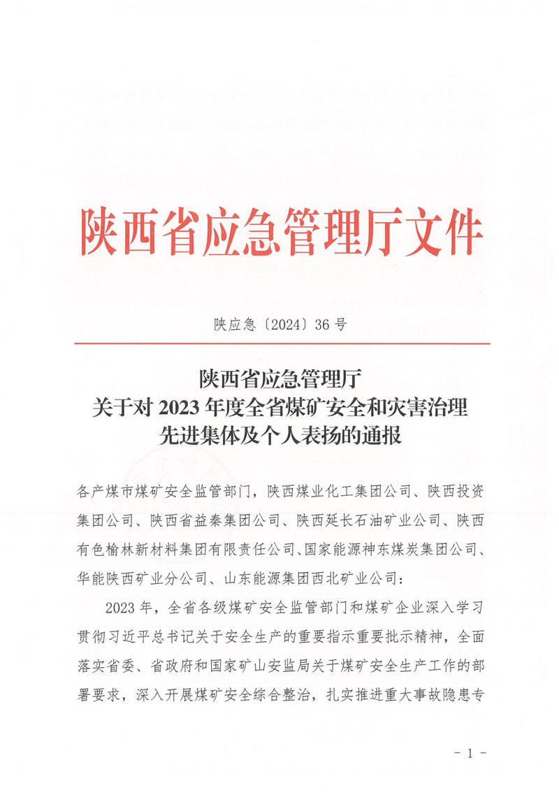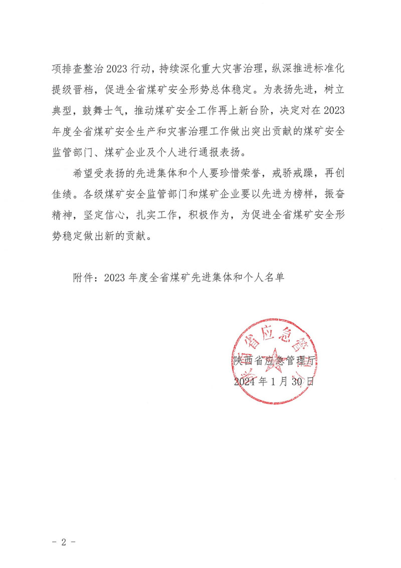 2月1日,陜西省應(yīng)急管理廳在西安國(guó)際會(huì)議中心組織召開全省煤礦安全工作會(huì)議,對(duì)2023年全省煤礦安全先進(jìn)集體和個(gè)人通報(bào)表?yè)P(yáng),匯能集團(tuán)所屬錕源煤礦榮獲“陜西省煤礦企業(yè)安全先進(jìn)集體”稱號(hào),這是繼錕源煤礦通過國(guó)家一級(jí)安全生產(chǎn)標(biāo)準(zhǔn)化管理體系現(xiàn)場(chǎng)定級(jí)考核后,取得的又一項(xiàng)重大殊榮。