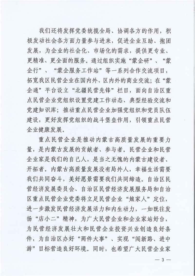 致自治區(qū)重點(diǎn)民營企業(yè)的一封信